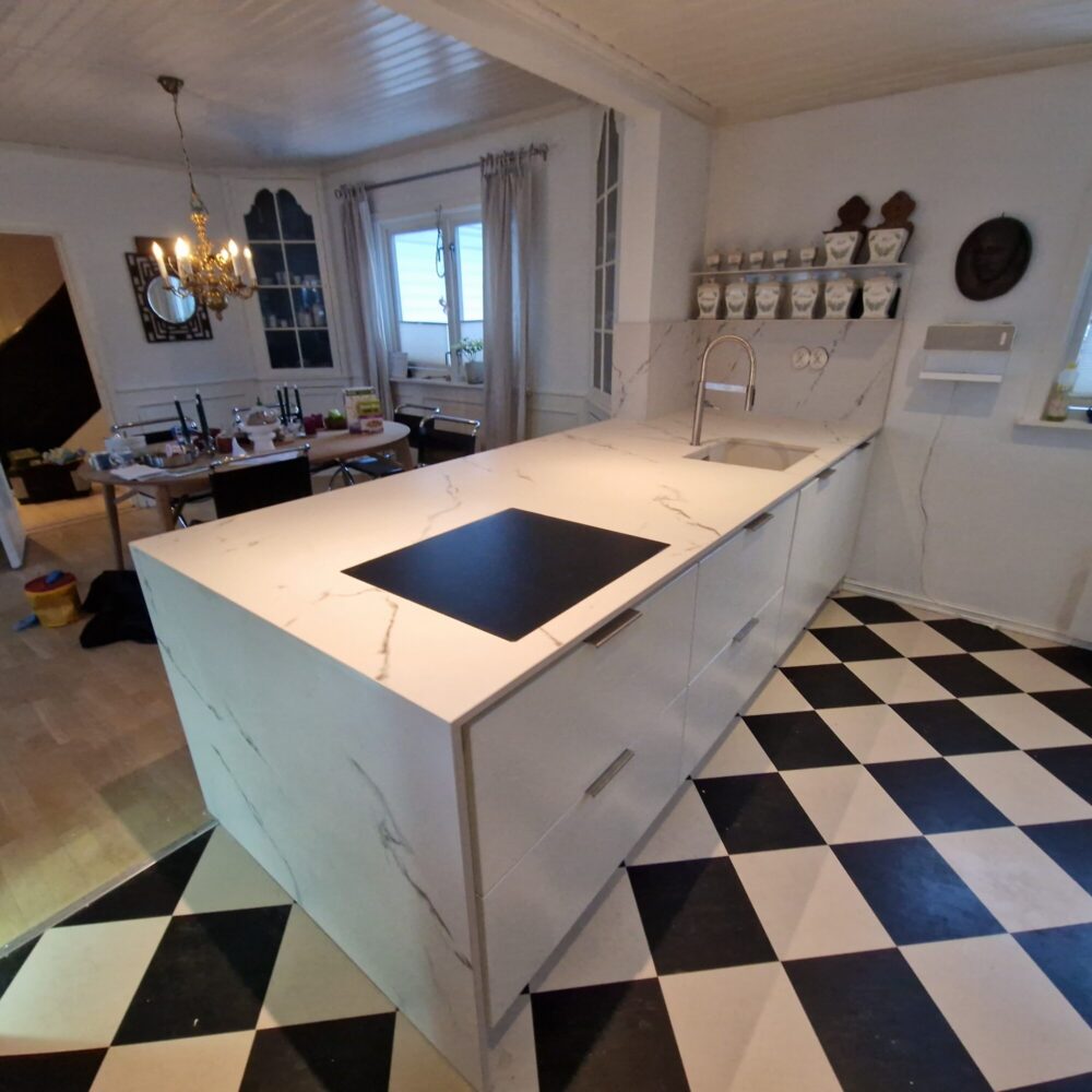 Vi har levert skreddersydde steinbenkeplater i Dekton Aura 15 til en moderne hytte. Prosjektet inkluderer en stilren kjøkkenbenkeplate med underlimt vask og backsplash, samt en funksjonell kjøkkenøy med planlimt kokeplate – alt produsert lokalt i Trondheim. Dekton benkeplater er perfekte for både hytte og hjem med sitt marmorpreg, slitestyrke og vedlikeholdsfrie overflate. Vi leverer benkeplater i Dekton, Silestone, granitt, marmor og Sensa – med CNC-presisjon og rask levering i hele Midt-Norge.